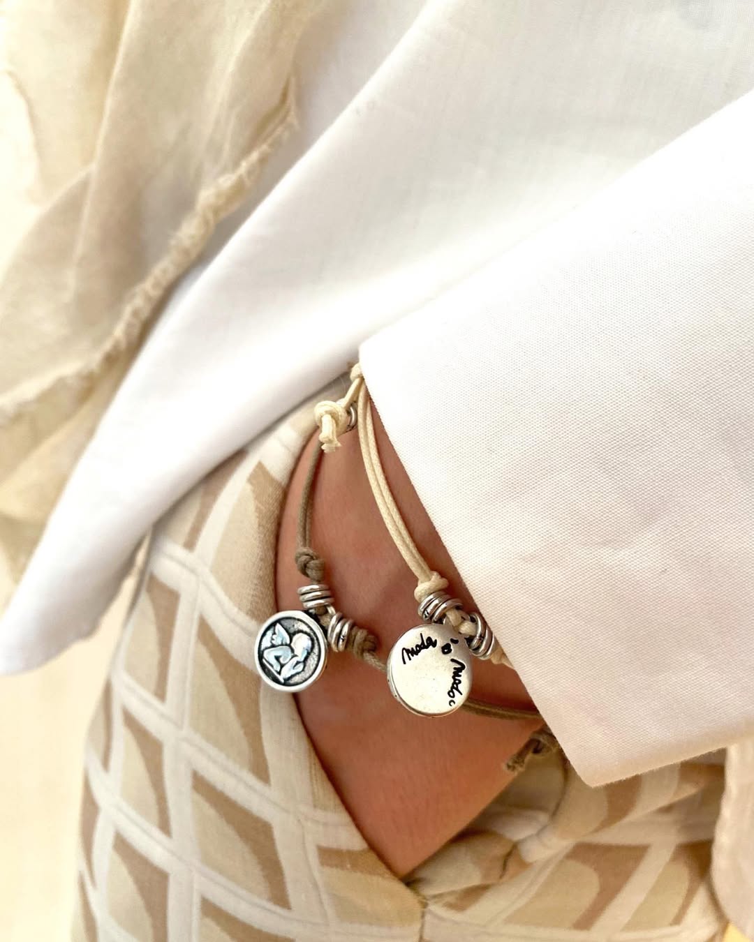 The Guardian Angel charm is a timeless symbol of protection and care. When you tie it on, close your eyes and make a wish: this piece is made to carry intentions.